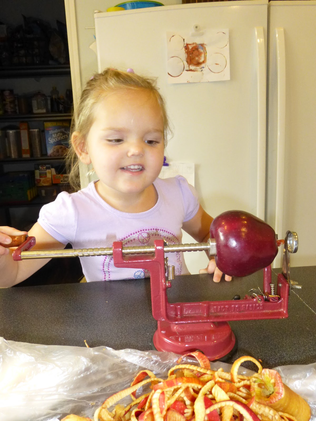 Science: We put some apple seeds in a plastic bag and are watching them to see if something will happen. We also had fun learning about the life cycle of an apple. Most of the children were in awe that apples start out being flowers. We cut an apple open to see the star/flower shape. Do apples sink or float? We had fun guessing and then testing to learn the answer.